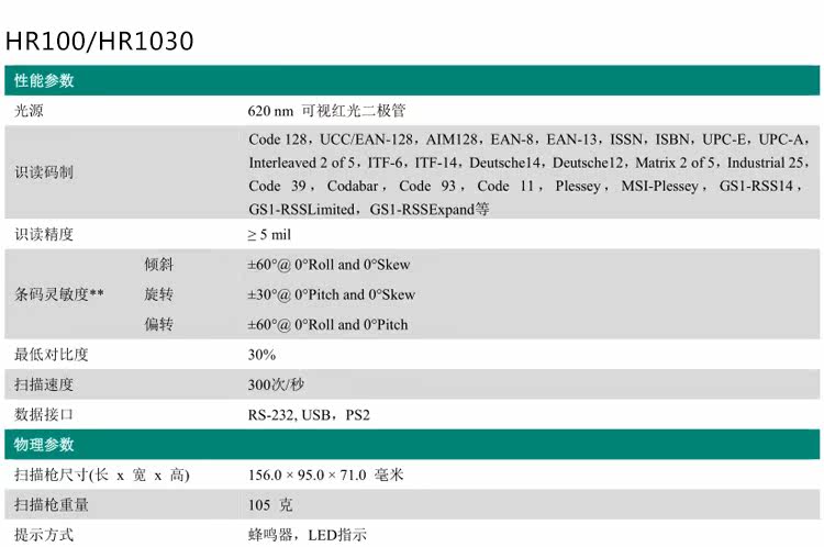 New World HR100/HR1030 One -Dimensional Scanning Gun WeChat Code Code Express Code Code Supermarket Supermarket