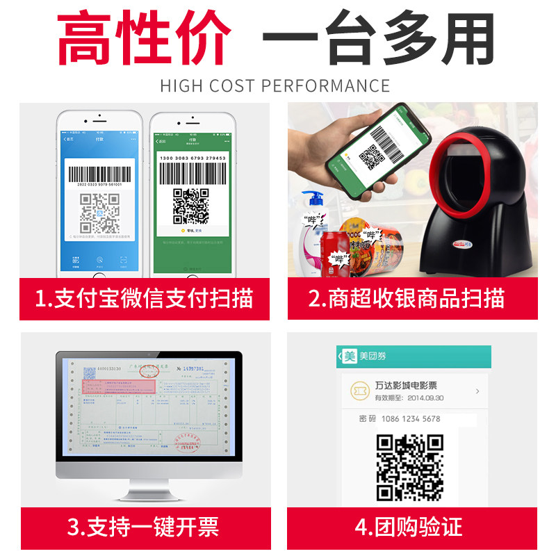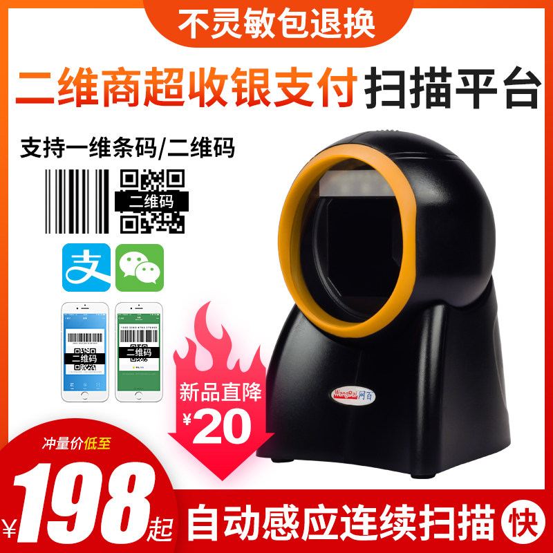 NetBaid Laser Scanning Platform H20 Line Supermarket Special Special Scanning Код кода многословного кода QR -код WeChat Alipay Box Scanning Gun USB Автоматический код кода зондирования