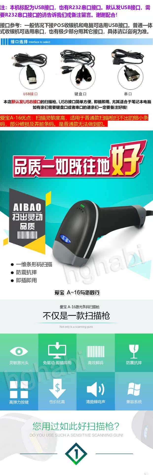 Aibao A16 Штрих -кодовый сканирование пистолета быстро