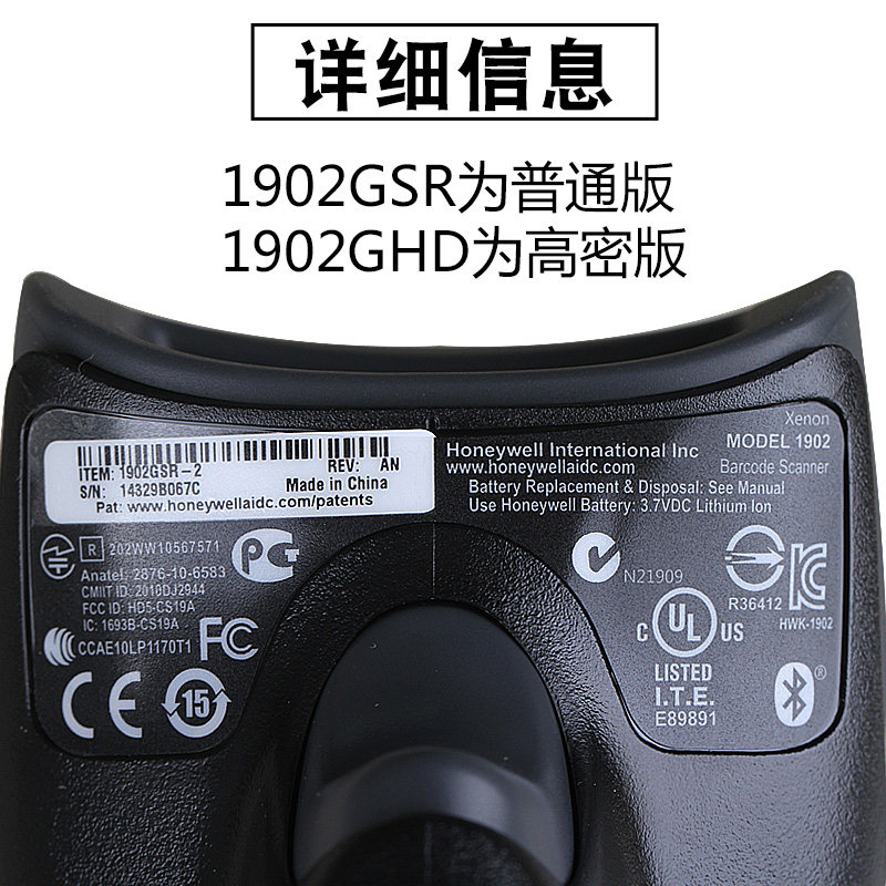 Honeywell Honeywell 1902GSR Двухмерный беспроводной проводной сканирующий штрих -код Сканированный код 1902GHD