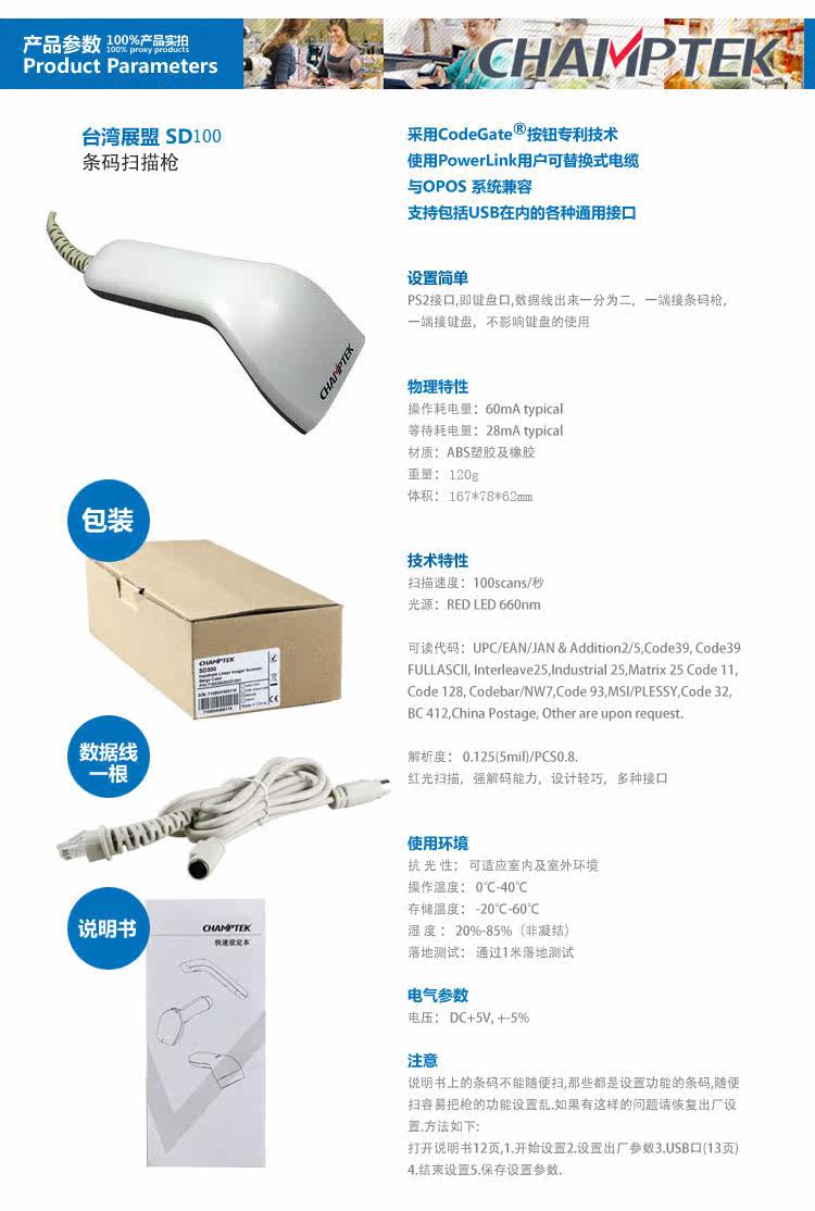 Сканирование штрих -кода сканирование сканера Сканер Инфракрасное CCD выставка Champtek Alliance SD120