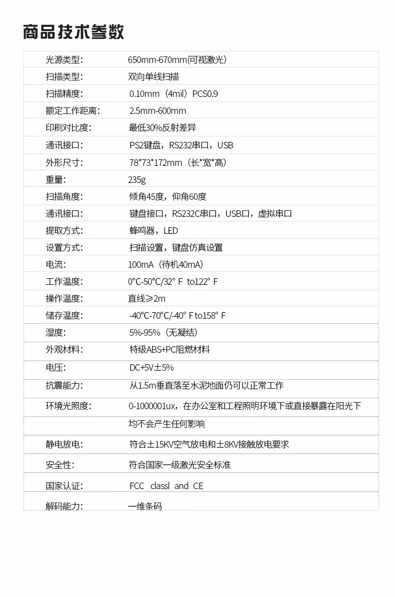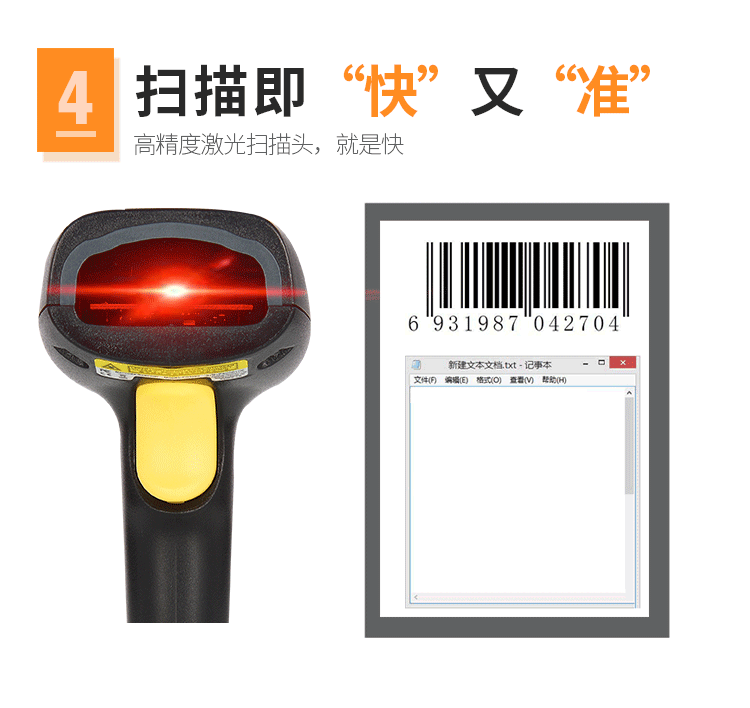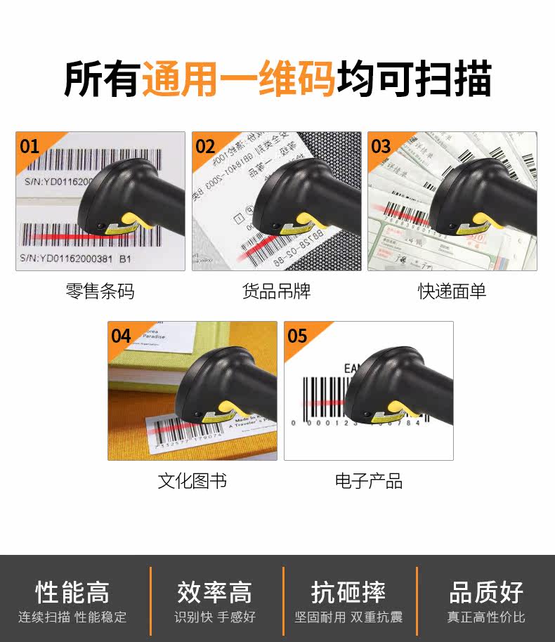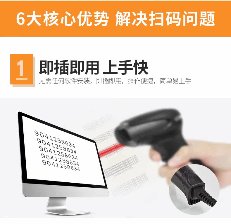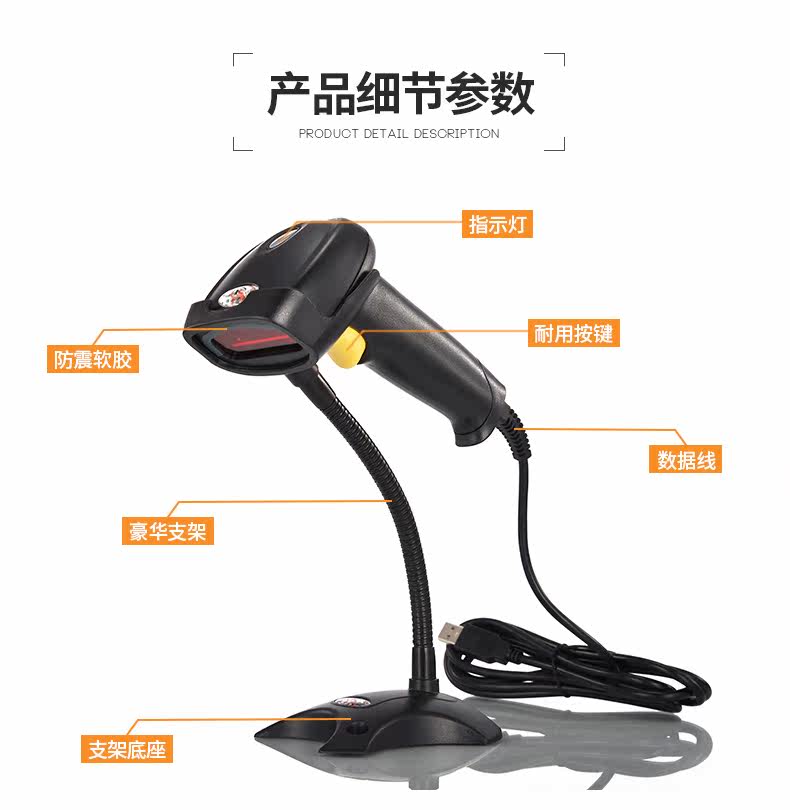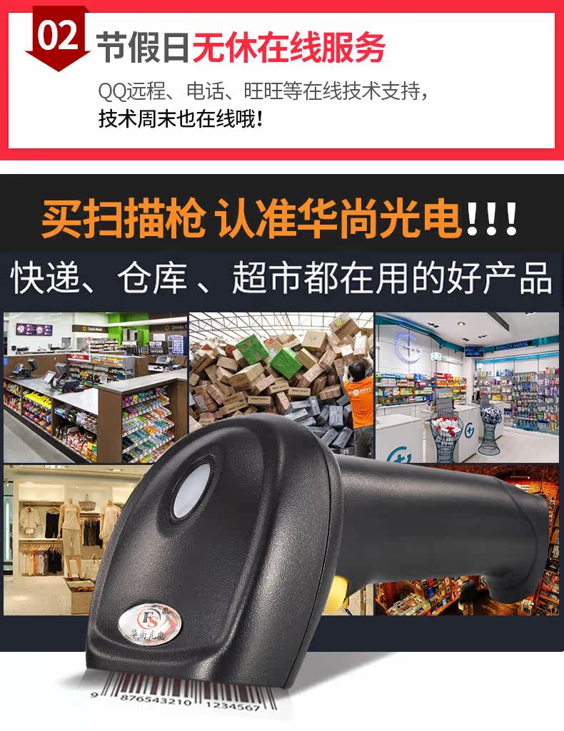 Huashang Optoelectronics Wired Laser Scanning Code Code Code Gun Gun Baba Gun Supermarket Express Special USB -сканер