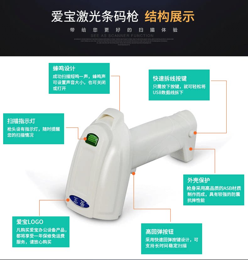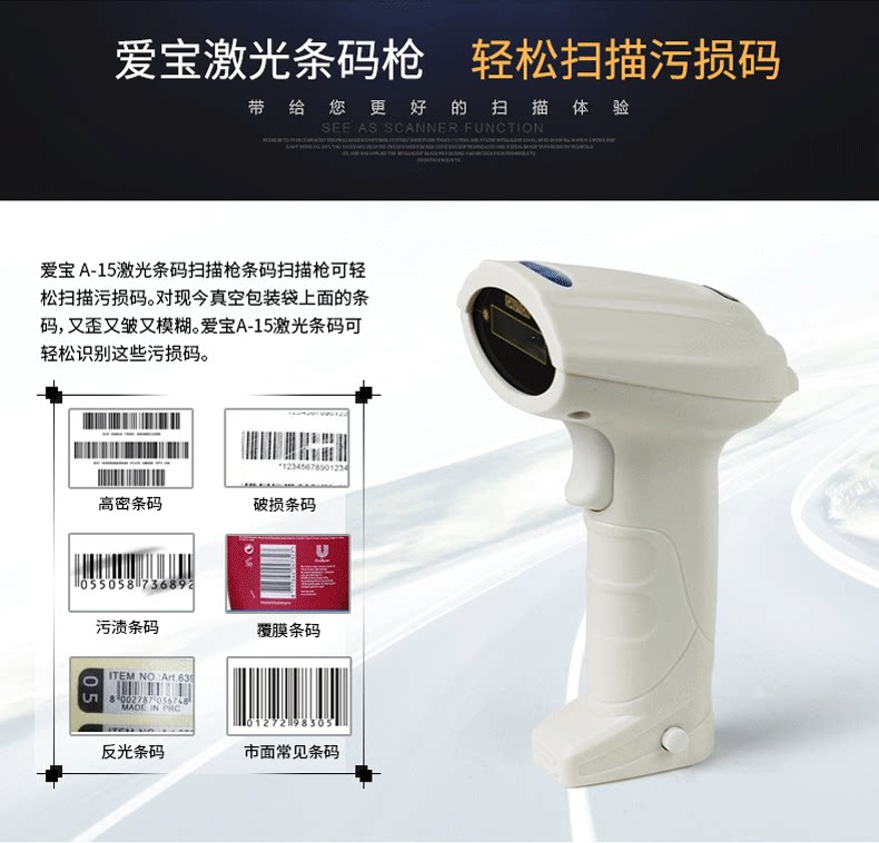 AIBAO A-15 Сканирующее сканирующее сканирующее оружие Сканирующее пистолет Supermarket Express Order Special Code Scanter Scant