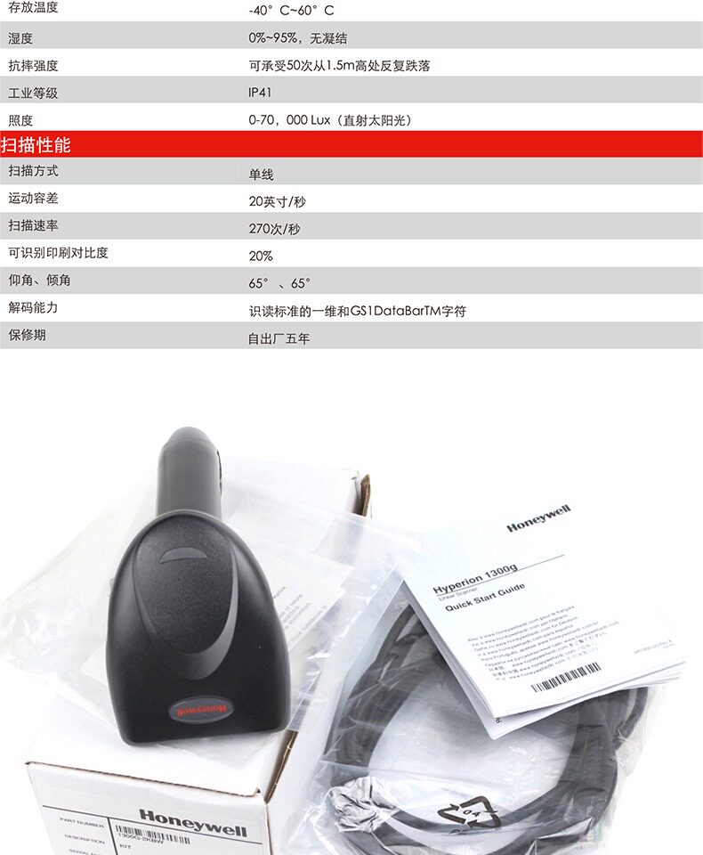 Honeywell Honey Well 1300G Один -мерный красный светильник Сканирующий код Scanning Gun Express Logistics Мобильный телефон Alipay WeChat Получает кодированные кодированные таблетки фармацевтические станции канцелярские товары канцелярские товары супермаркета супермаркета