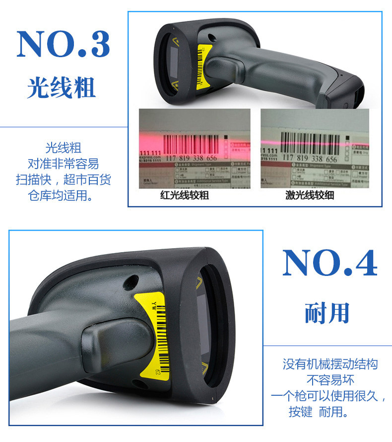 ②. В отличие от традиционных лазерных сканирующих пистолетов, этоМеханическая структура свинга, сканирующая головка нелегко сломаться