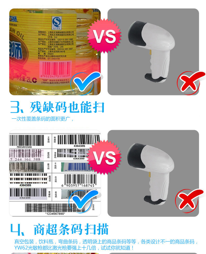③. Вы можете сканировать штрих -коды штрих -кодов с жестким массовом, таких как различные коды инвалидов, штрих -коды на бутылках для напитков, вакуумные штрих -коды и т. Д.