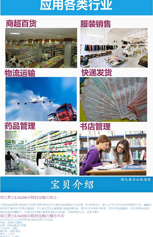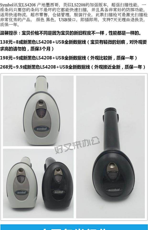 Express Scanning Gun Xymbol LS4208 Лазерный штрих -код сканирующий пистолет подходит для экспресс -логистики супермаркета