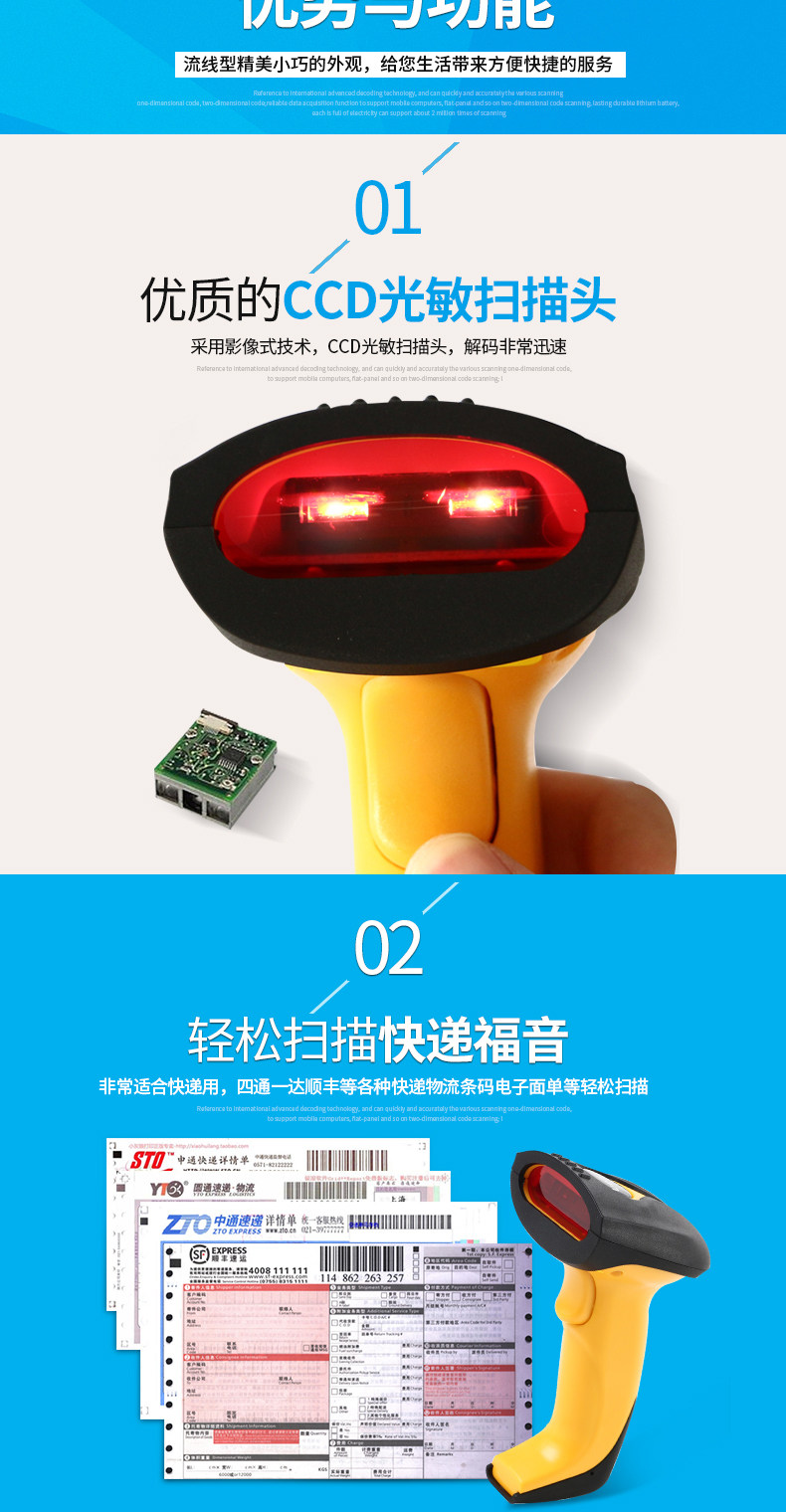②. В отличие от традиционных лазерных сканирующих пистолетов, этоМеханическая структура свинга, сканирующая головка нелегко сломаться
