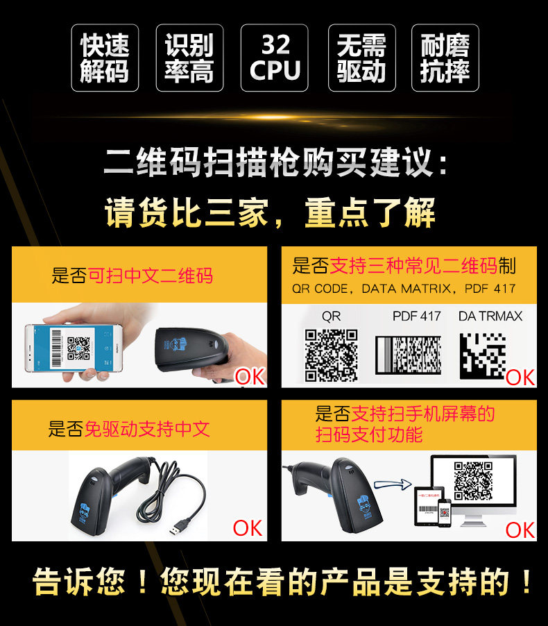 H2W Wired Scanner Scanner Экран мобильного телефона WeChat Платная супермаркет серебряного сканирования код скоростного кода Сканирование орудийного сельского хозяйства Сделайте сельскохозяйственные материалы