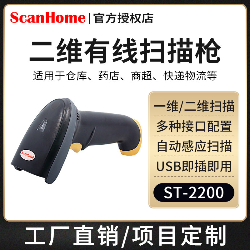 Scanhome QR-код сканирующий кабельный кабельный код Сканер промышленного серийного порта RS232 Сканирующее оружие Электронное платеж USB Сканирующее сканирование Scan Scan Platform ST-2200