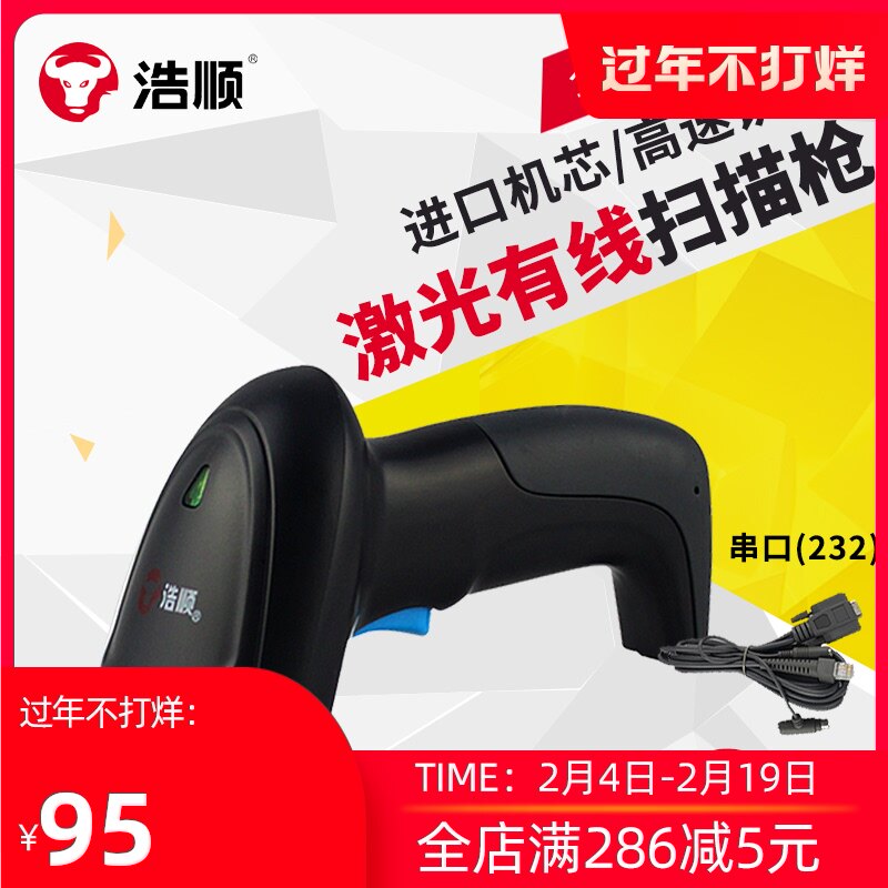 浩顺 Сканирующее пистолет последовательного порта (интерфейс 232) Лазерный проводной линейный код Сканирующее оружейное порт [можно использовать T71-30 60 70 80 90 Сборник сбора]]
