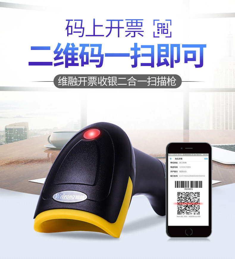 维融 QR -код сканирующий сканирование оздоровительного кода штрих -кода, кабельный супермаркет WeChat Alipay Cashiers Дебиторский оборудование.