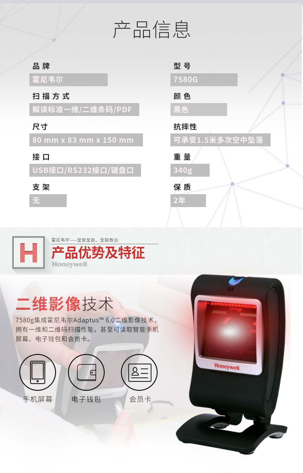 Honeywell Honeywell MS7580/G QR -код сканирование платформы мобильного телефона Экран Код кода кода кода Код кода