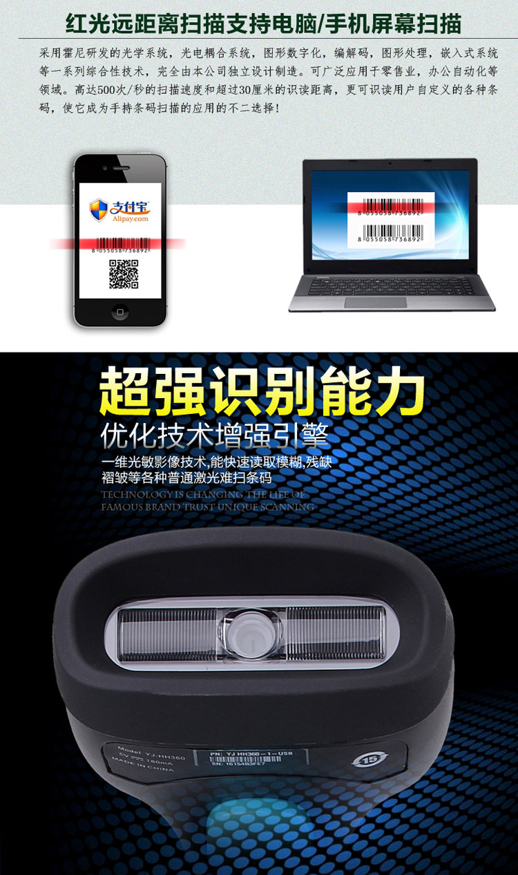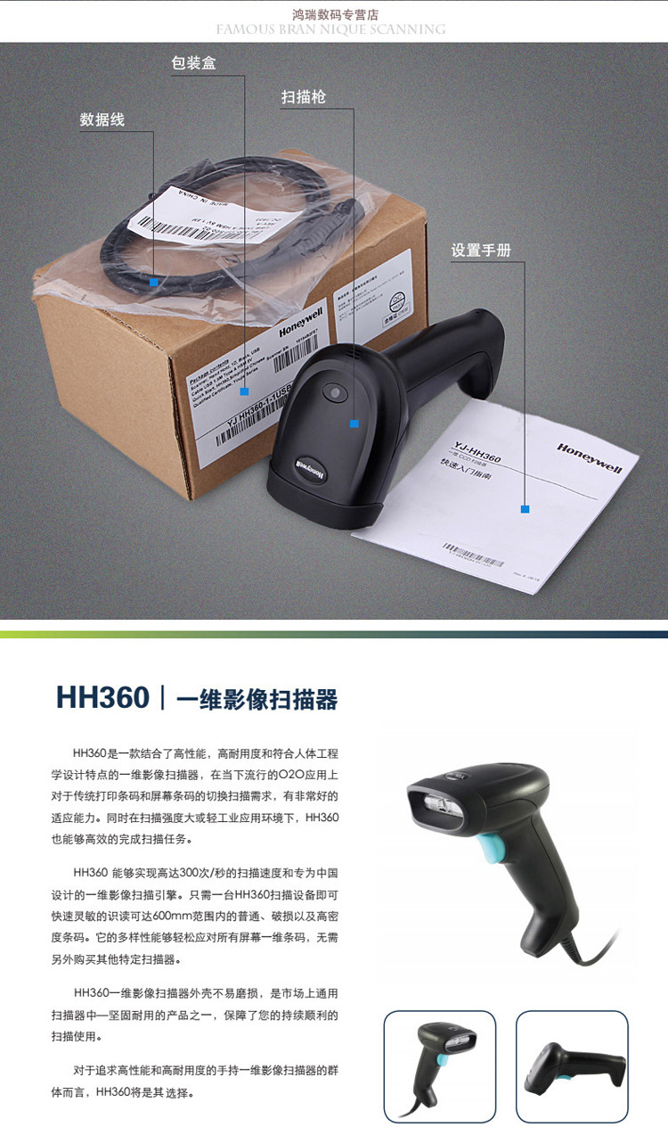 Honeywell Hhnwell Scanning Gun HH360 Кабельный код скорость Gun Supermarket Supermarket Aphact Pay WeChat