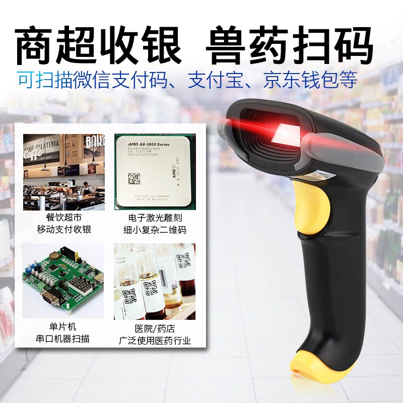 Stuka Wired QR -код сканирующий пистолет двухпрофильный сканирующий оружейный оружейный оружейный оружейник одноразовый код кода кода продуктового кода.