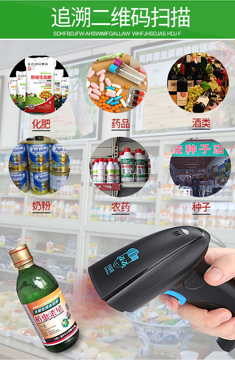 - Беспроводное одномерное лазерное сканирующее пистолет (подходит для склада/экспресса/супермаркета)