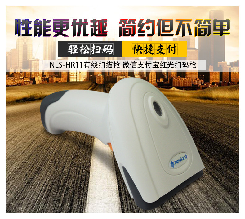 Новый мир HR11 Wired One -Dimensional Scanning Gun Мобильный телефон Сканирующее сканирование орудийного кода Сканирующее супермаркет супермаркет