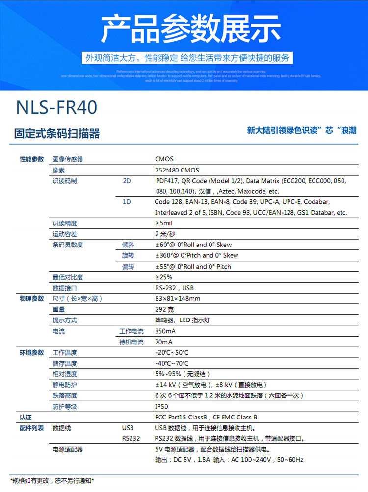 Новый мир FR40 QR -код FR20 Scan Platform Supermarket Supermarket Puletage Подходит для табачной компании Xiang Yitong