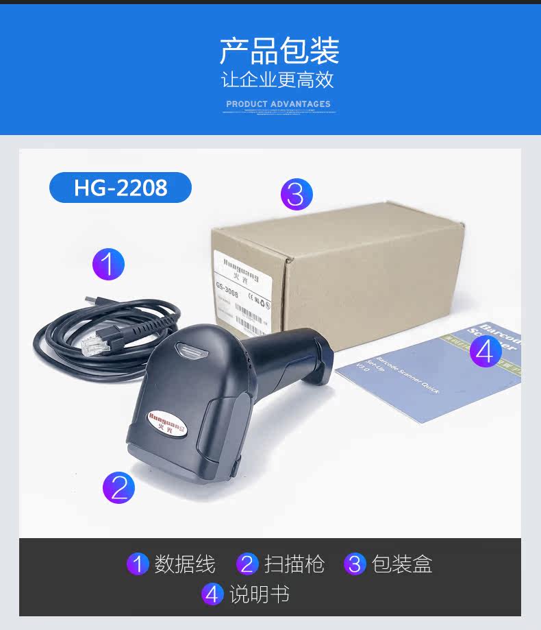 火光 Huoguang HG2208GSR/GHD Wired QR -код сканирующий пистолет мобильный телефон WeChat платеж китайский сканирующий пистолет