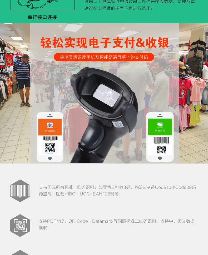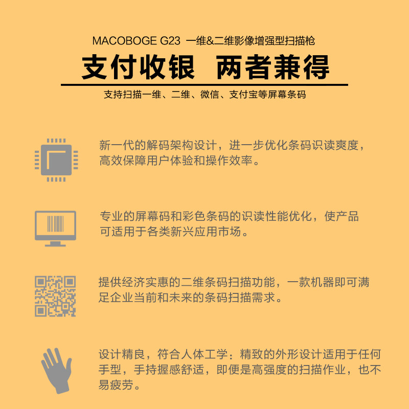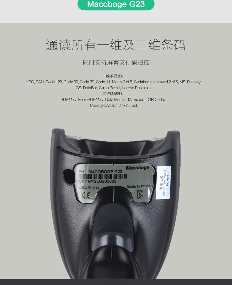 G23 Двумерное сканирование штрих -кода штрих -кода оружейного штрих -кода WeChat Mobile Supermarket Supermarket Store More Apparmage Cashier Cassier