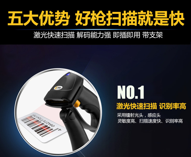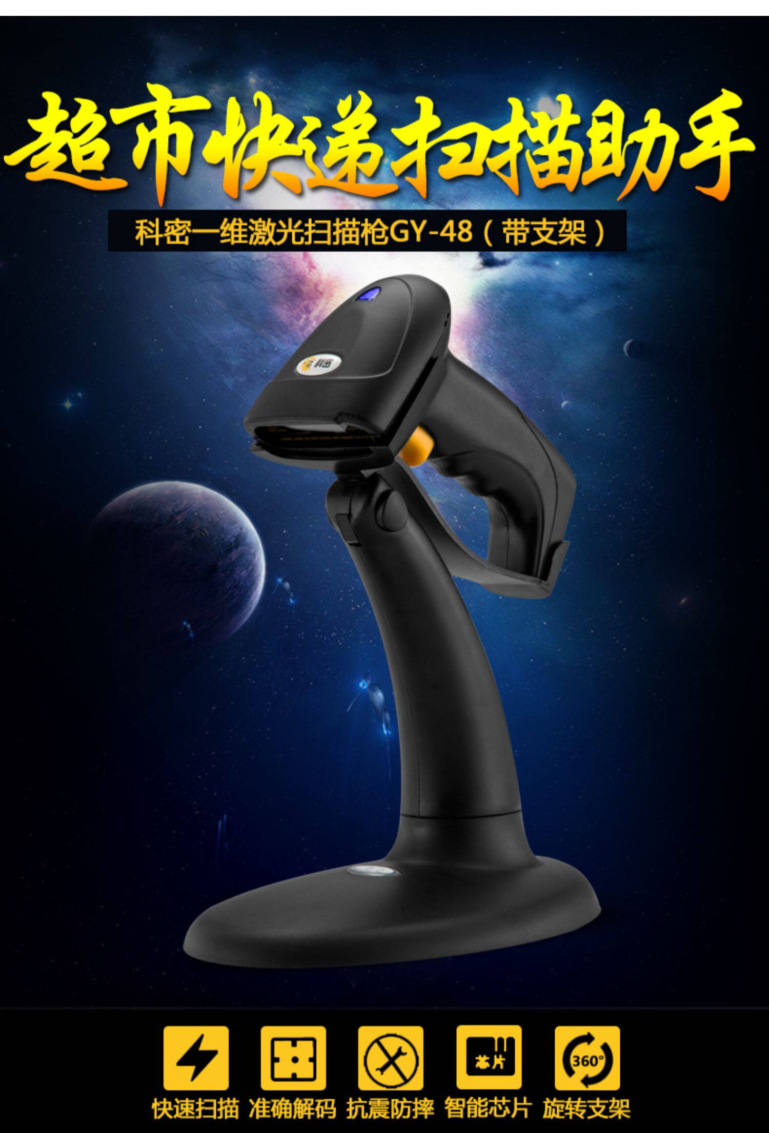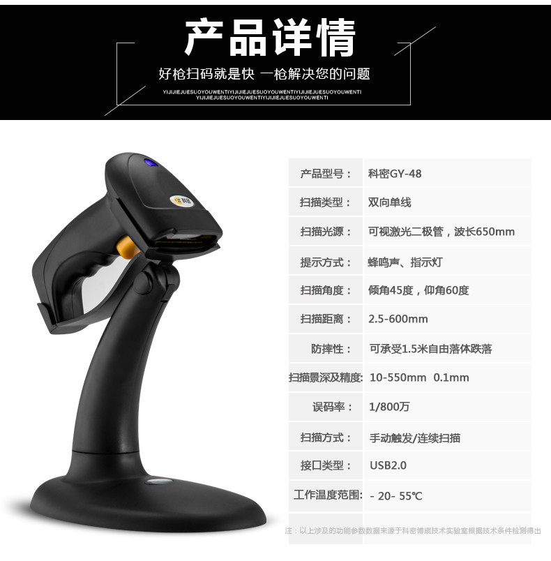 Кеми GY-48 лазерный штрих-кодовый сканирующий пистолет одномерный кабельный кабельный супермаркет сканер кодера с кронштейном с кронштейном