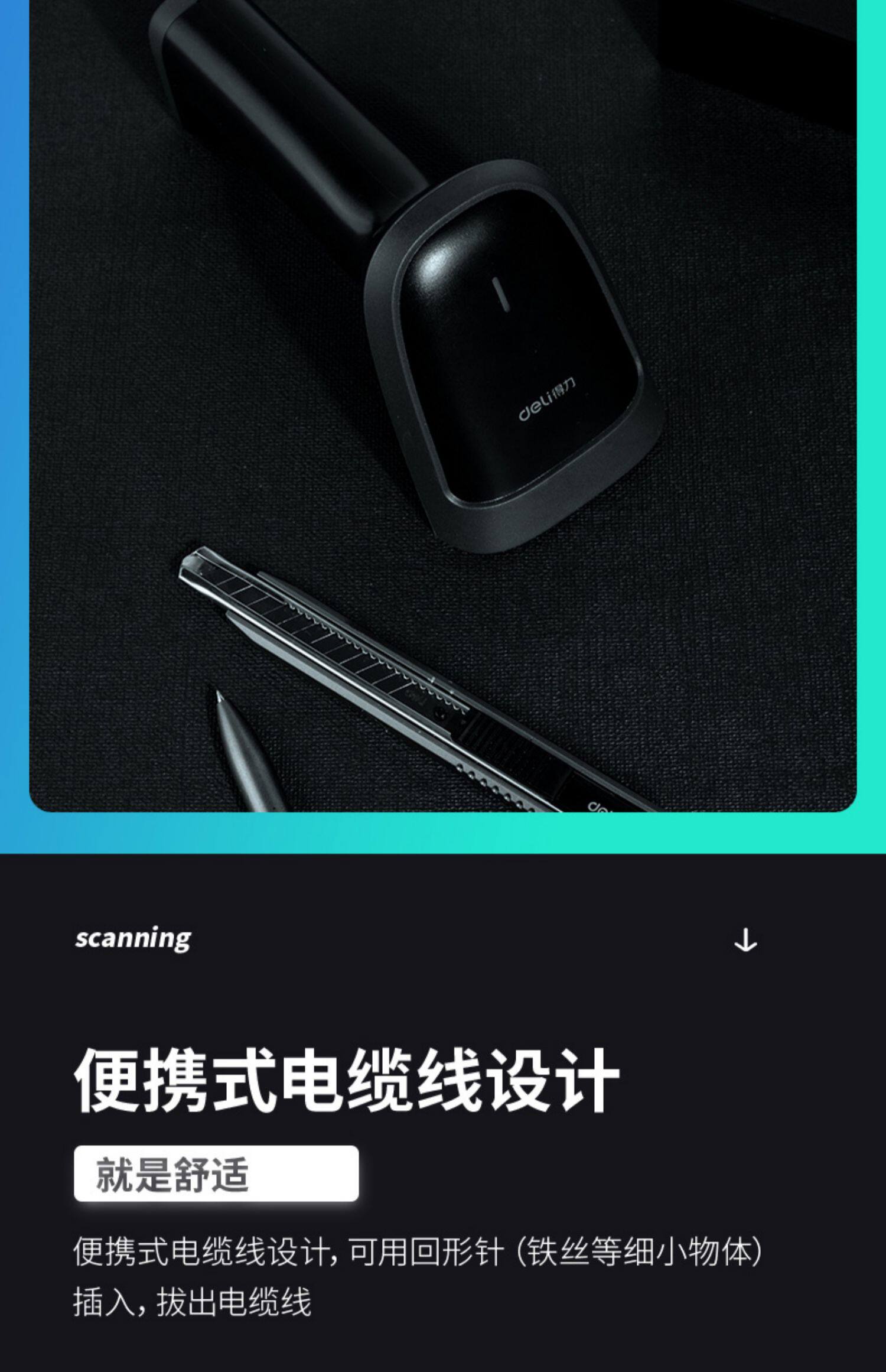 Deeli 14881 Сканирующее код, проводное USB USB беспроводной сканирующее код сканирования, сканирование кода супермаркета Supermarket Alipay WeChat Cassier Coding Код кода из библиотеки Сканирующее пистолет.