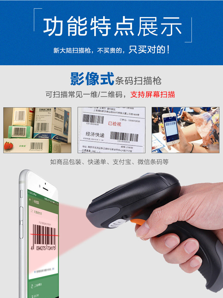Новый мир OY20/10 Один измеренный двухмерный штрих -кодекс Сканирующее сканирование беспроводного сканера проводного сканера супермаркета WeChat Alipay Cashier Cassier, кассир, сельскохозяйственный ветеринарный код следов лекарств, курьер