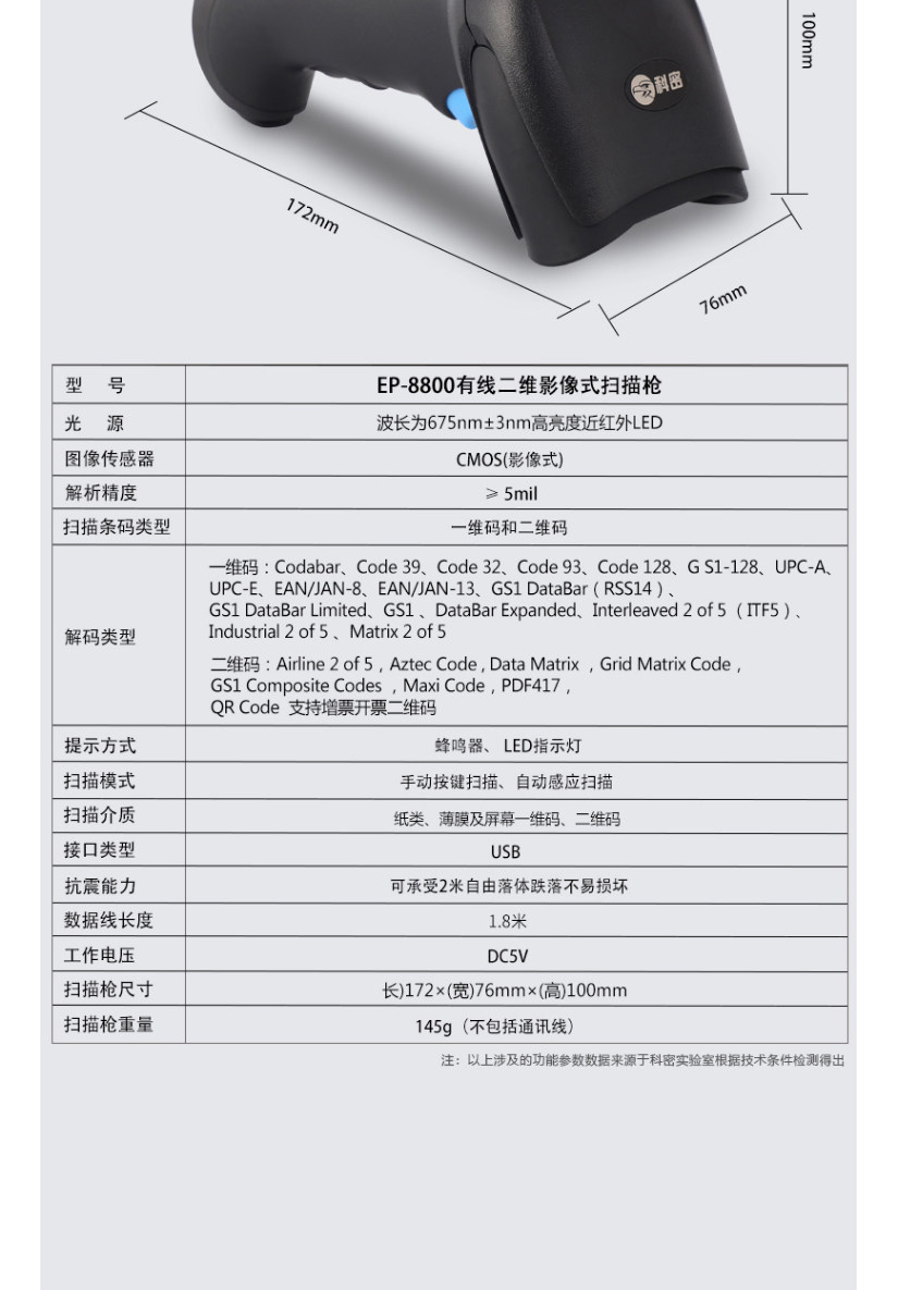 Kemi EP-8800 Wired USB Одномерный код сканирующий пистолет WeChat Alipay мобильный телефон сканер компьютера.