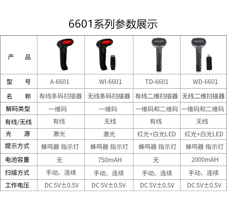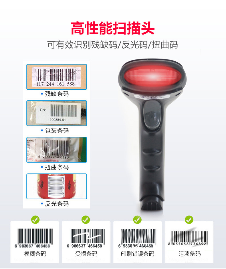 Aibao 6601 Кабельное сканирование пистолета беспроводной QR -код Сканирование Код Списка Одежда супермаркет сельскохозяйственная пестицид