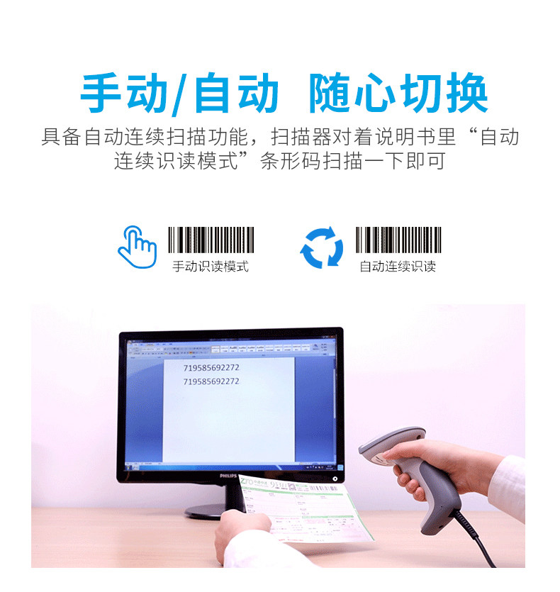 Сканирование кода Беспроводное WeChat Alipay QR -код сканер Сканер супермаркет кассир склад курьер курьер один счет -фактура сельскохозяйственного кода Сканирование сканирующего сканирования