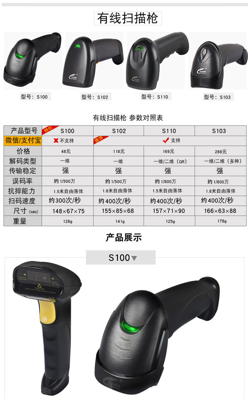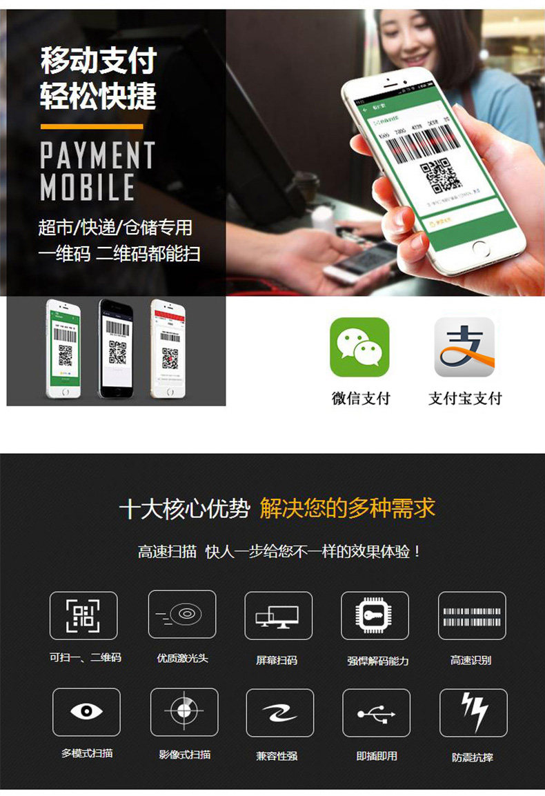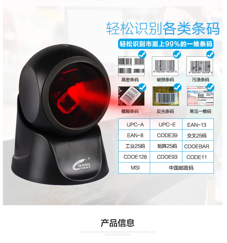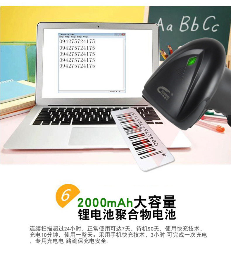 川唯 Кодовое сканирование ружья беспроводной супермаркет кассовый реестр. Счет -фактор QR -код штрих -код All -in -One Machine WeChat Code Код платеж Курьер склада ручной работы одно -мерное сканер кода Alipay
