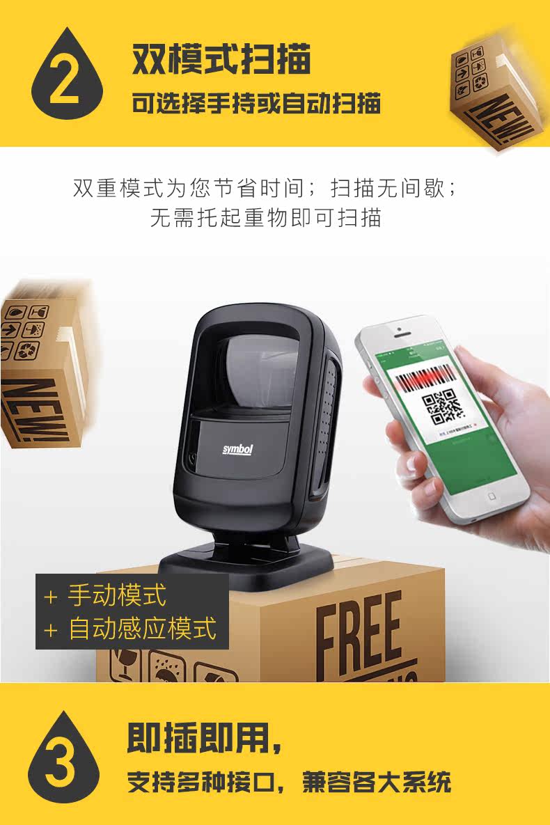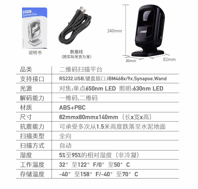 Zebra Xunbao DS9208/9308 QR -код сканирующей платформу супермаркета кассовый реестр Специальный код Сканер Сканер