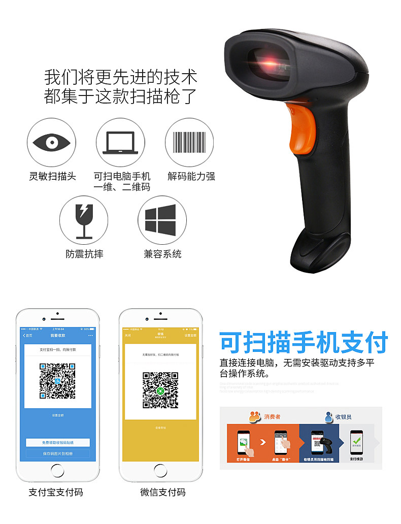 Новый мир oy20/10 QR -код сканирование ружья.