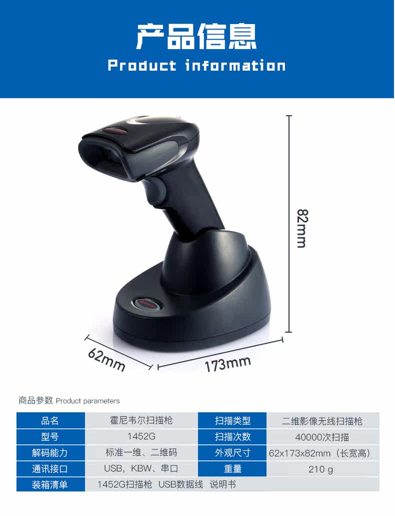 Honeywell Honeywell 1452G QR -код беспроводной сканирующий пистолет планшет мобильный телефон Сканирование пистолета супермаркет аптеки