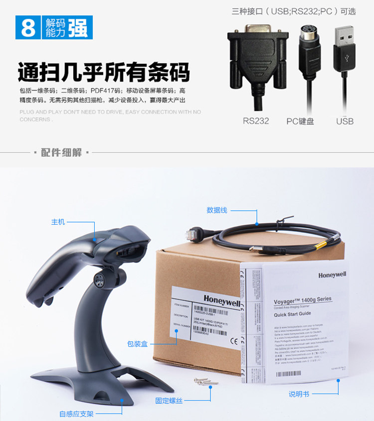 Honeywell 2D-сканер Honeywell 1400G Беспроводной сканер Alipay 1200G/1202G