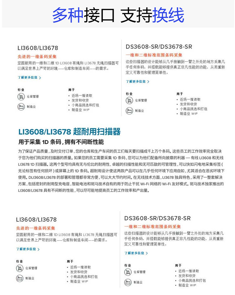Zebra Zebra DS/LI3608/3678-SR/HD/DP Беспроводной QR-код Сканирующее пистолет промышленного сканирующего пистолета.