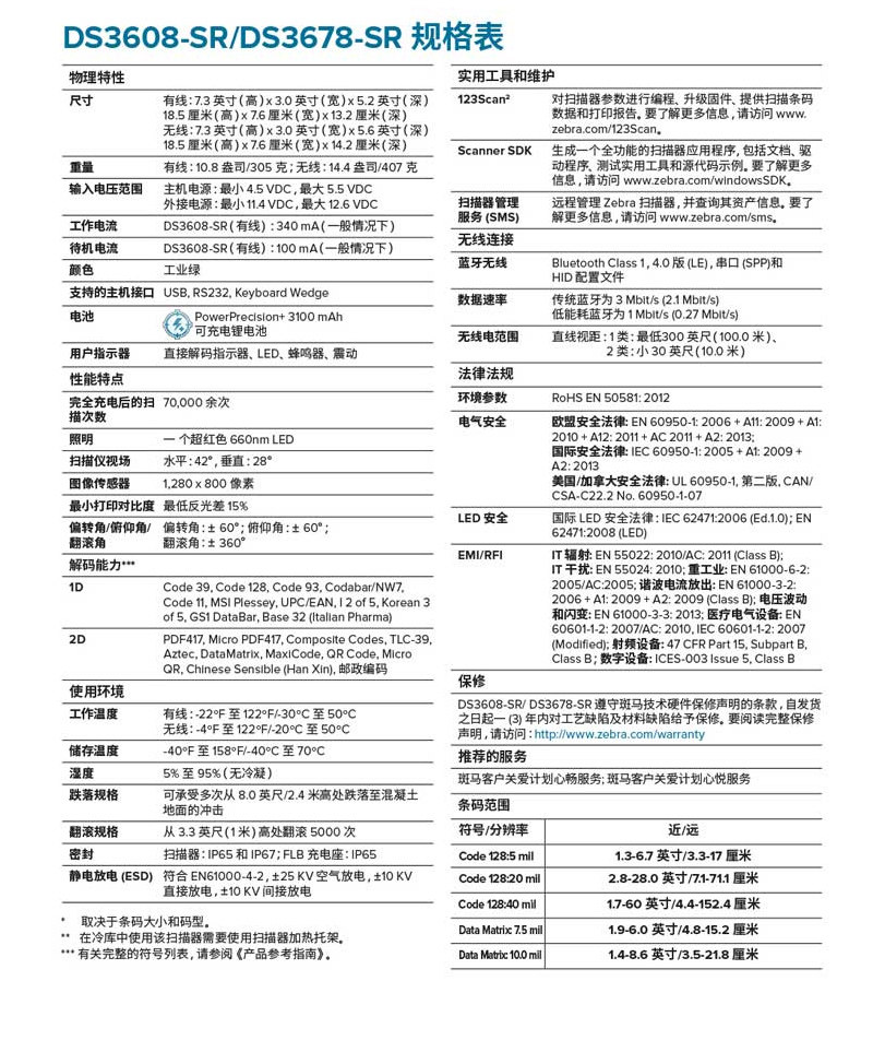 - Двумерная беспроводная стандартная версия DS3678-SR USB-интерфейс