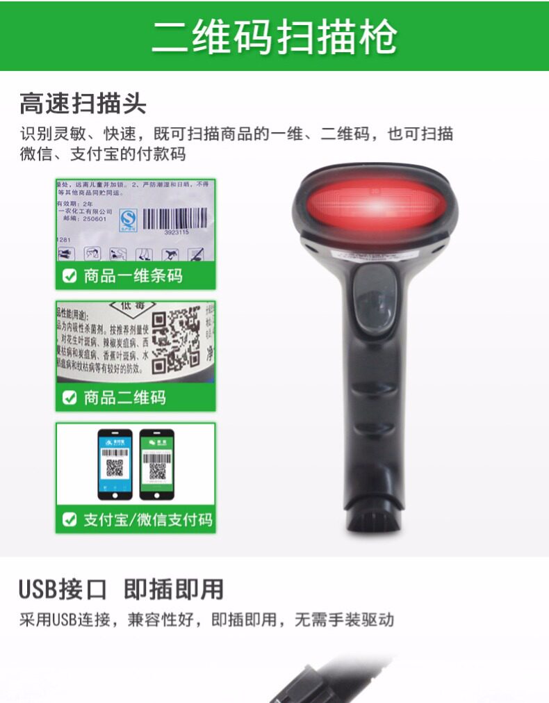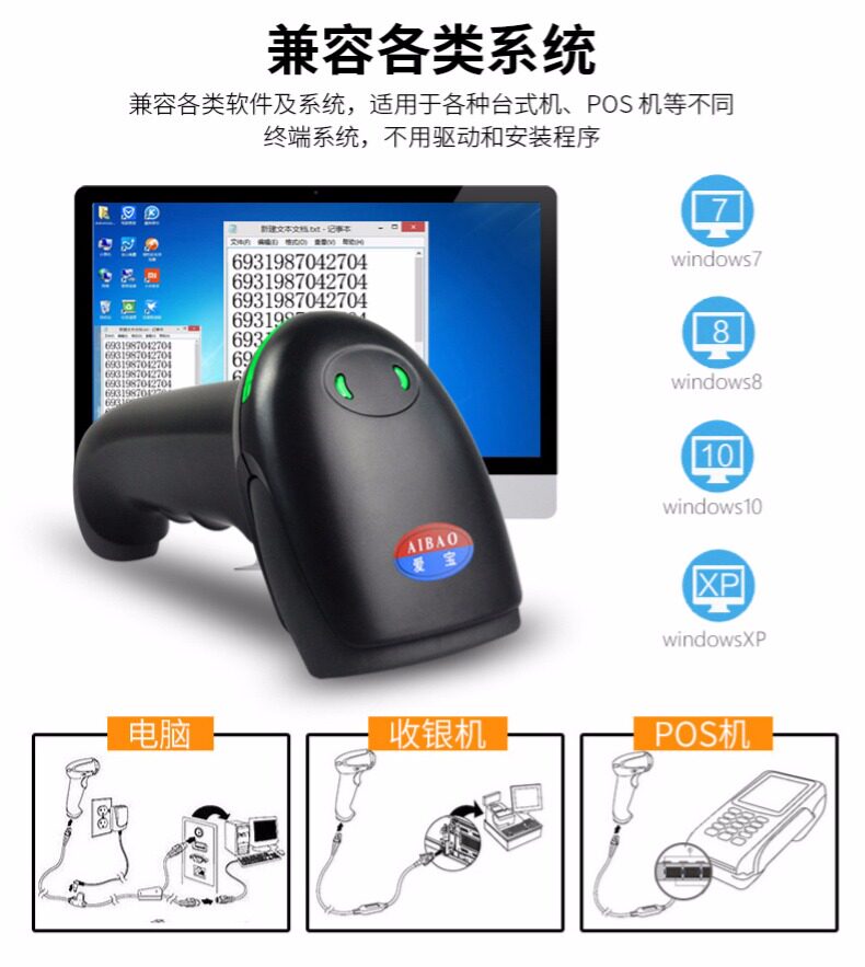 Aibao сканированный код Gun Беспроводной сканирование сканирования оружия Сканирование штрих -кода штрих -кода QR Alipay WeChat Supermarket Supermarket Cash Register Cashier Кодирование штрих -кода и в -depth Scanner