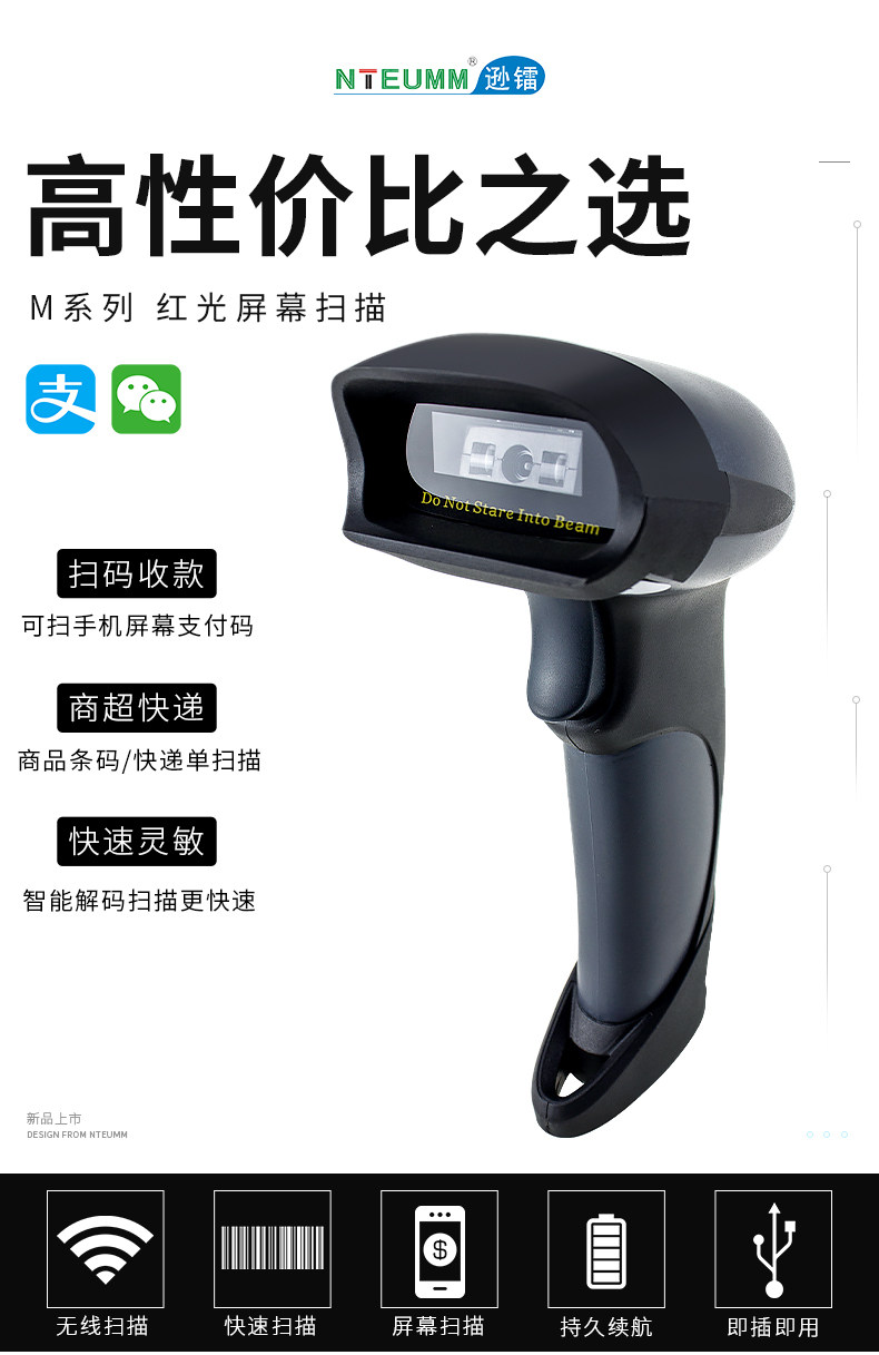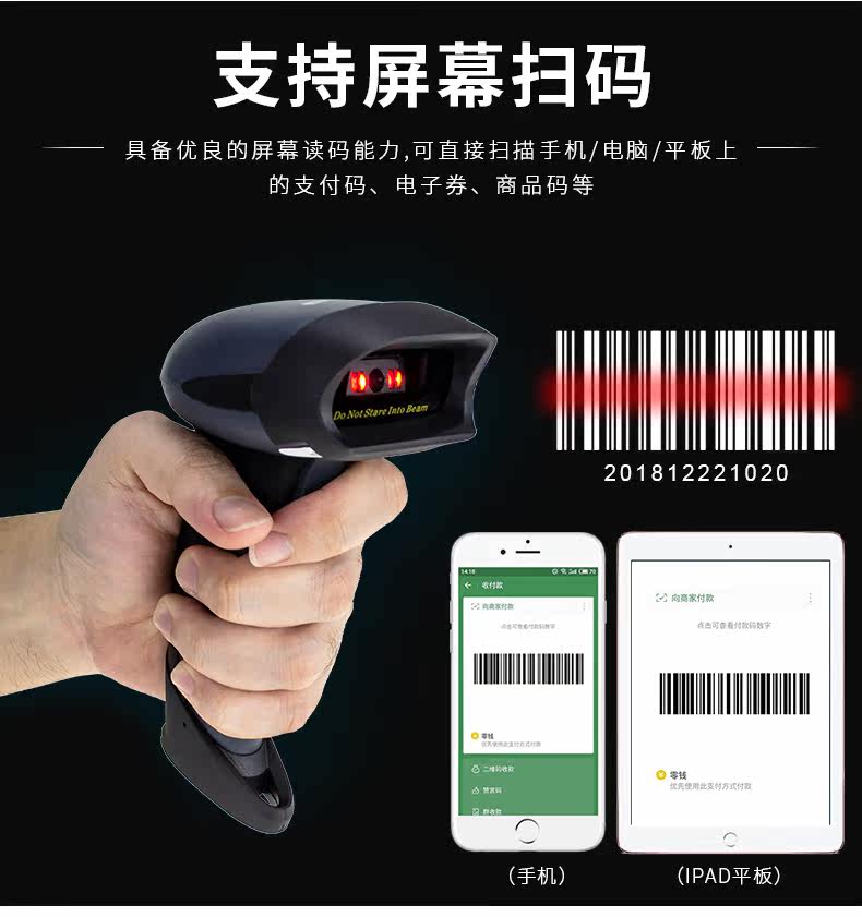 Xun drad drad беспроводной код сканирующий сканирование оружия Сканирование пистолета QR -код сканирование код супермаркета код код код код код