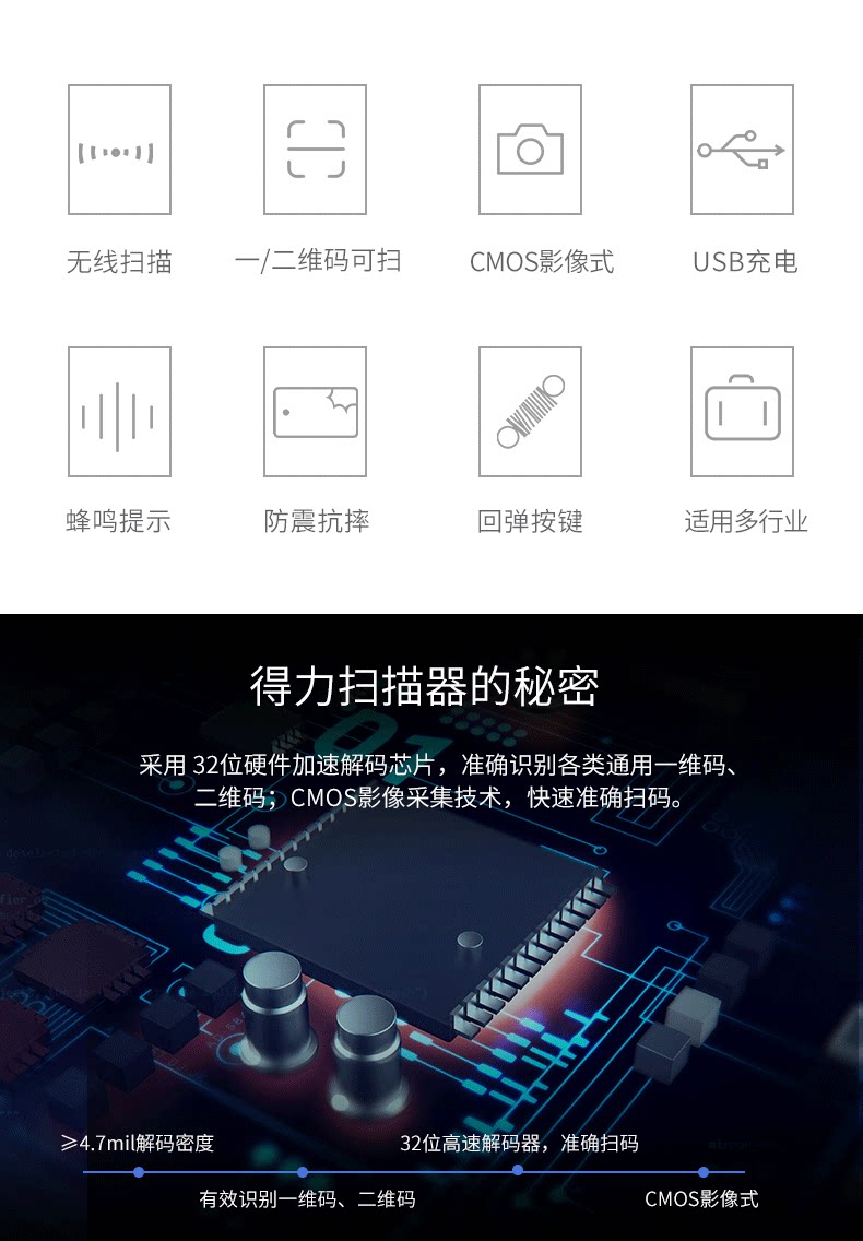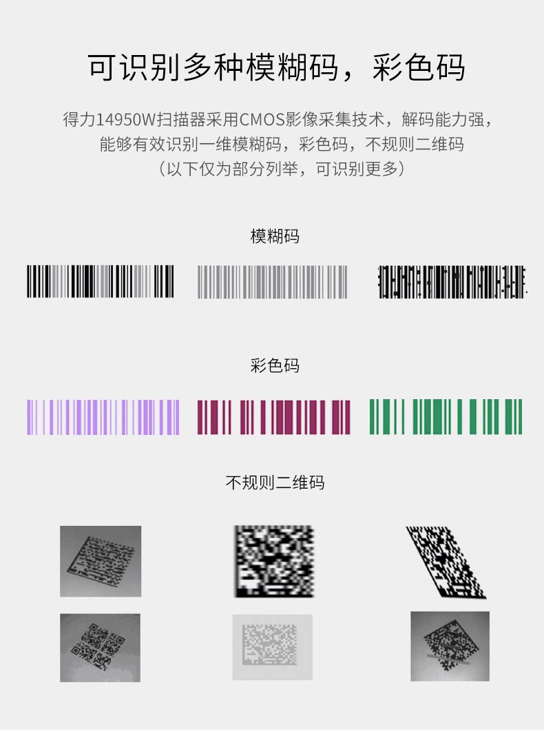 Deli беспроводной сканирование Gun 14950W Код сканирования Gun Express Supermarket Scanner Scanner QR -код сканирование сельскохозяйственного столичного магазина трасса Электронный информационный код Alipay