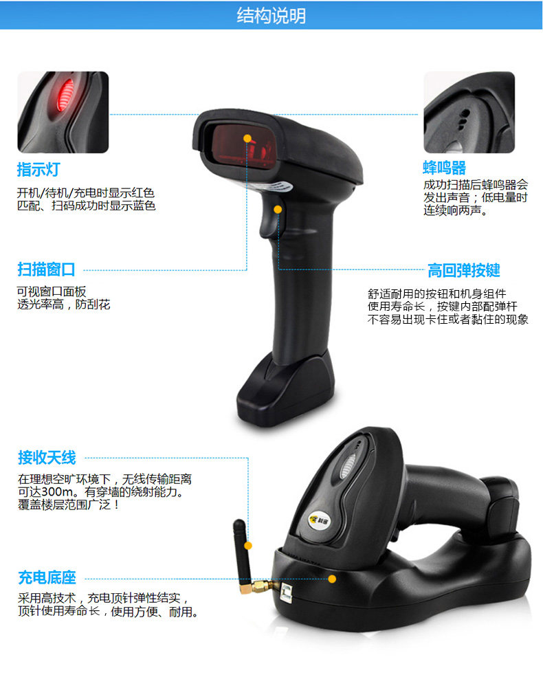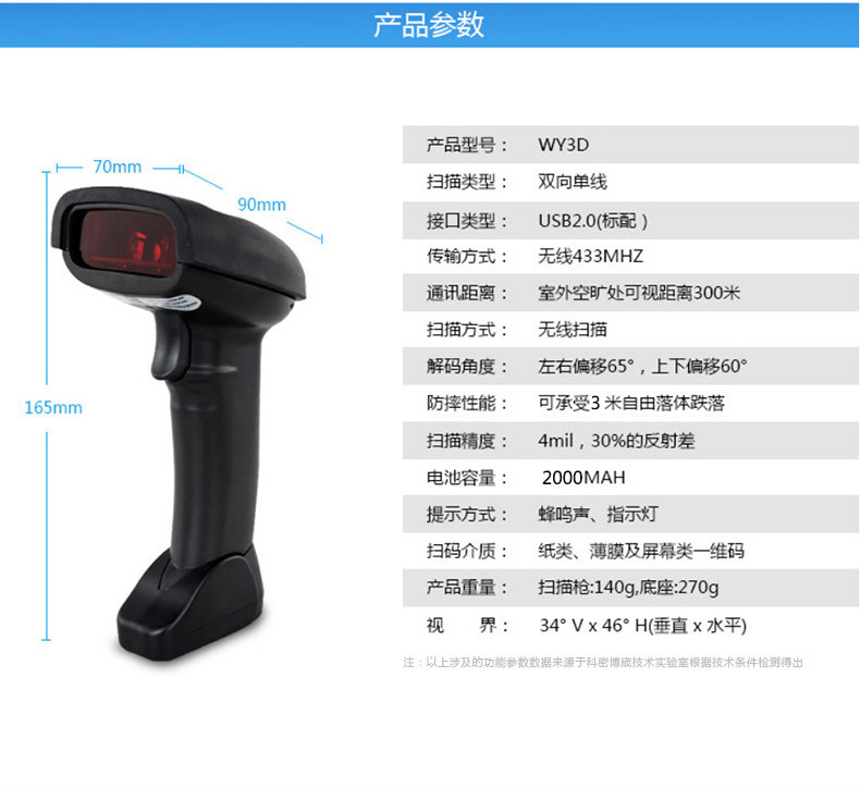 Kemi Wy3d беспроводной одномерный штрих -кодовый сканирующий сканирование супермаркета Сканер Сканирующий Сканирующий Сканинг Сканинг Сканинг Сканирующего Склада Сканирующий склад