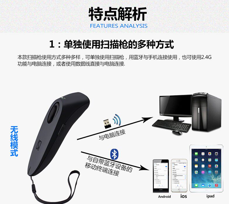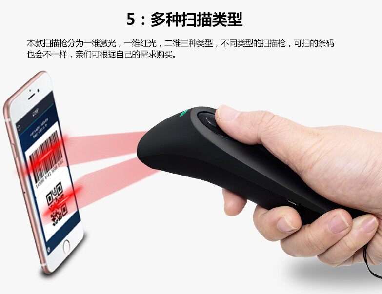 | Цвет: | Беспроводной Bluetooth-сканер с красным светом 1D, Беспроводная линия Bluetooth с красным светом 1D сканер QR-кода |
