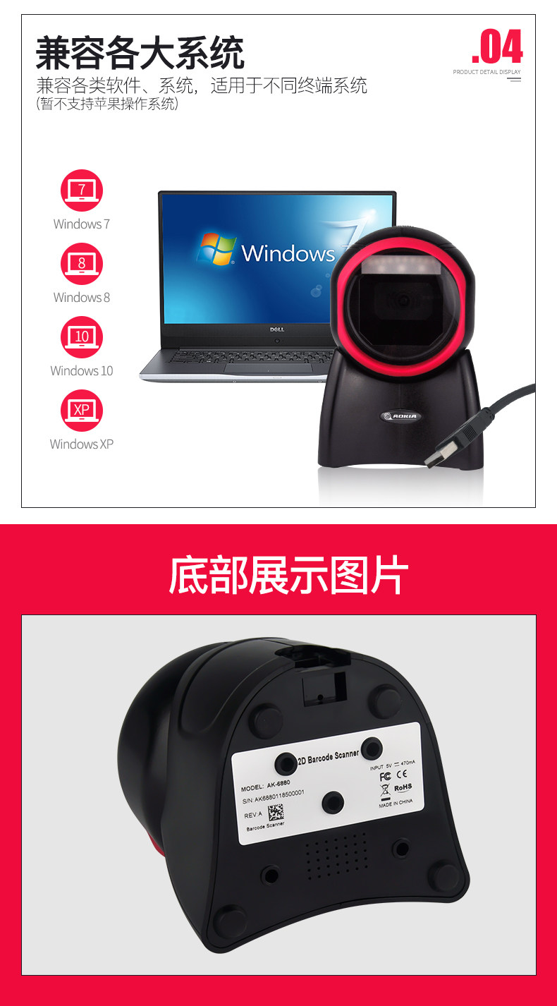Aojia 6880 QR -код сканирующей платформу Supermarket Supermarket CASS Scanning Gun WeChat Alipay Collection Code QR -код видео сканирование код оружия Кодирование кодирование код мобильного телефона Код код оплаты платежей
