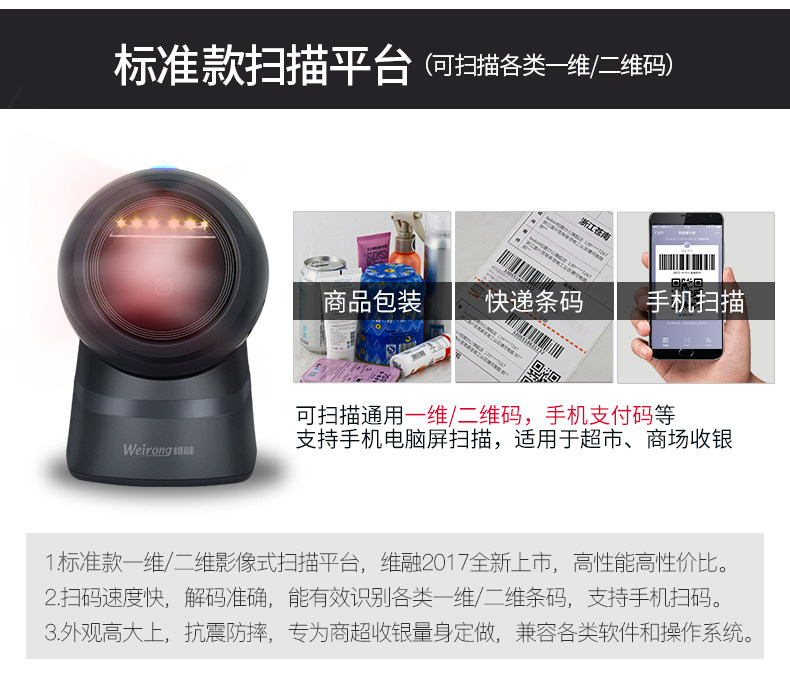 维融 QR -код сканер супермаркет кассовый реестр специального сканирования платформы WeChat Alipay Коробка штрих -кода штрих -кода штрих -кода Сканирующее сканирование сканирования сканирования сканирования сканированного сканирования кода сканирования