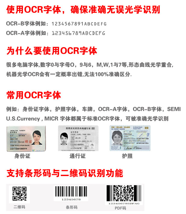 U1900g ocr буква буквы цифровой сканирование идентификатор символа символа паспорта штрих -код QR -код сканирующий пистолет