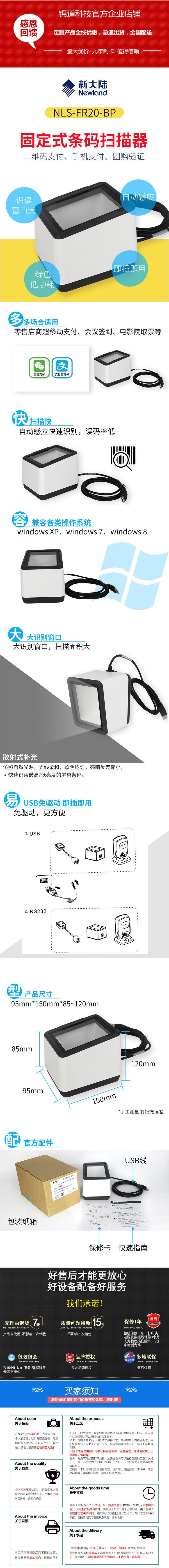 新大陆 NLS-FR20 Одномерный двумерный платеж с фиксированным штрих-кодом Scanner Scanner Supermarket Supermarket Scanner