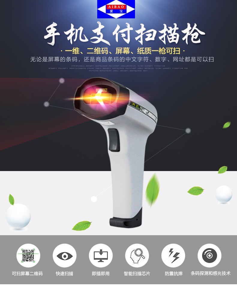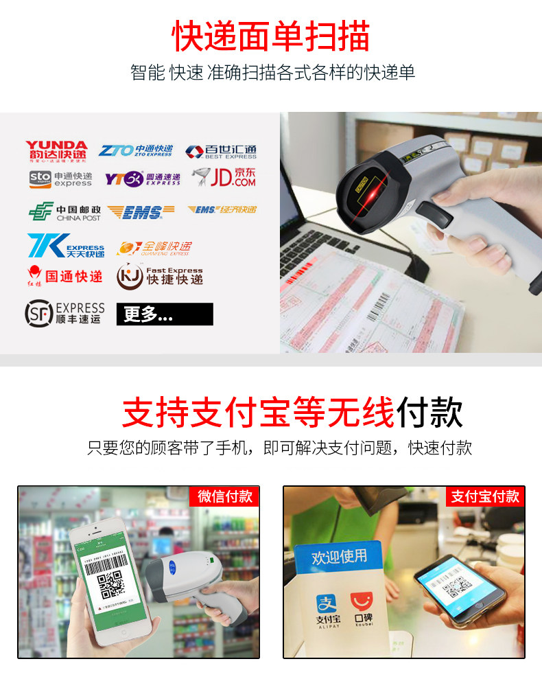爱宝 Сканирующее оружие беспроводной код код Express Получите супермаркет двухмерный штрих -код кабельный кабельный кабельный лазерный инструмент сканирования