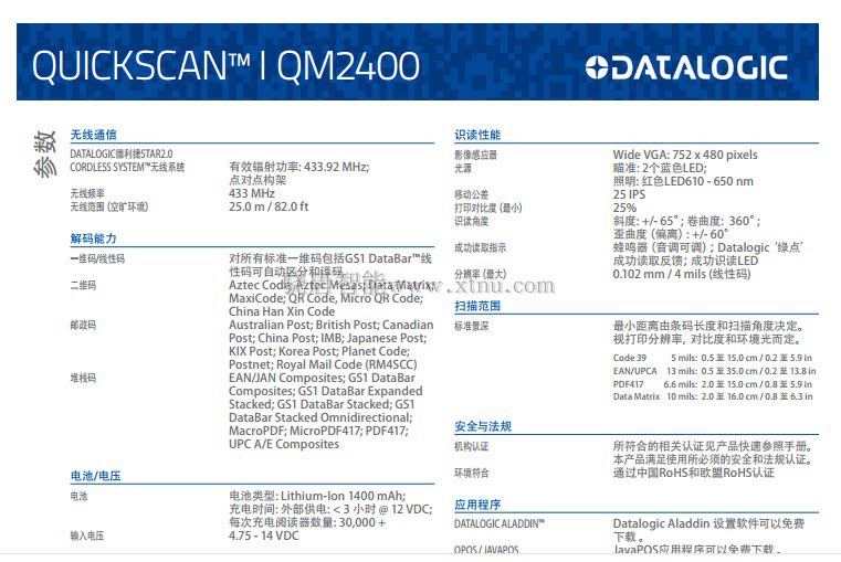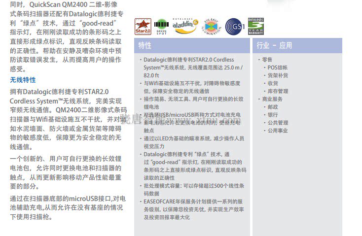 DataLogic Deeli QM2400/2430 Сканер тегов двух -дивменная изображение Беспроводное кодовое сканирование