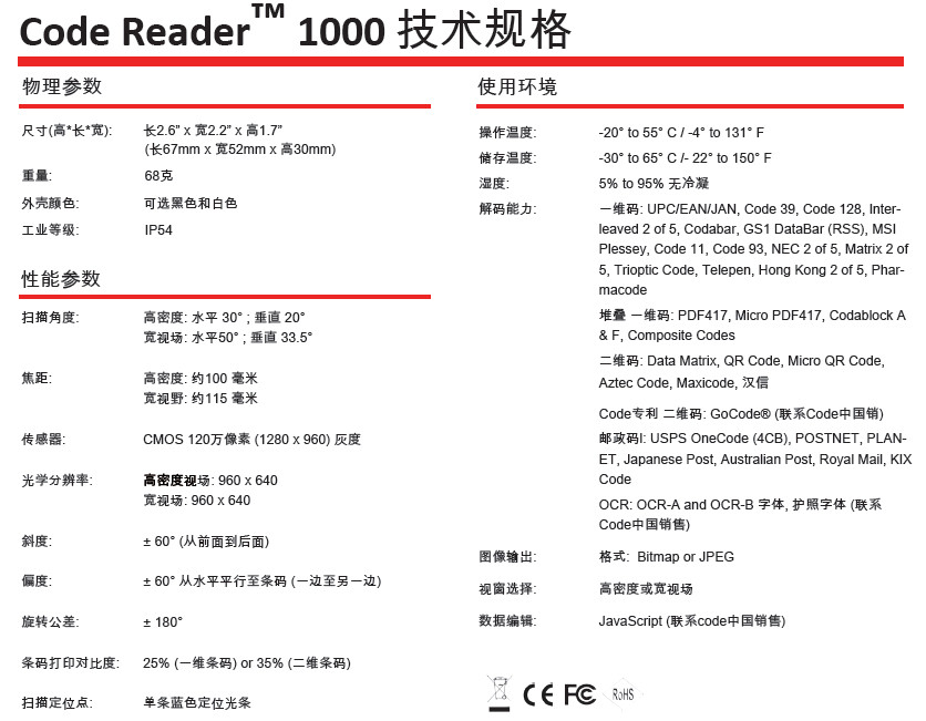 CODE CR1000 CR1011-CX CR1011-04 Фиксированный сканер