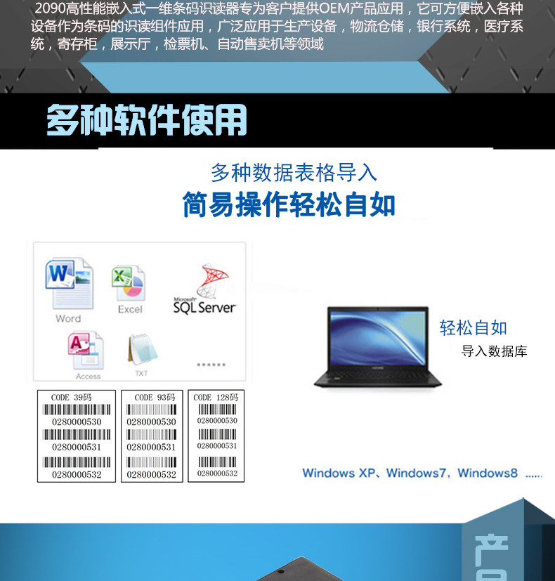 Agile 2090 Промышленного фиксированного одноразмерного QR -кода Сканирующее двигатель Сканирующего двигателя встроенного штрих -кодового сборочного оружия высокая
